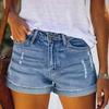 מכנסי ג'ינס קצרים לנשים מותניים גבוהים קרועים ג'ינס מיושן מכנסיים קצרים לקיץ נמתחים קז'ואל עם כיסים