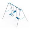 Modern playground for the garden DoneThe contemporary playground includes gymnastic ladders, a climbing net and a swing of your choice. The unique design allows for a variety of warm-up, gymnastic and stretching exercises. To extend the functionality of the playground, you can add: a swing frame or a swing frame with slide. The large number of play elements allows you to create a full-fledged play area for your child and their friends.PLAYGROUND EQUIPMENT FOR THE GARDEN:gymnastic ladderhorizontal ladderclimbing nettrapeze with wheelsIMPORTANT:Set suitable for children from 3 years and adultsLoad capacity: 100 kg (metal structure), 50 kg (accessories)Dimensions: 214 x 164 x 209 cmSafety zone: 755×400 cm.Assembly: concreteColours: yellow and silver*.Manufacturer's recommendation: children from 3 to 7 years of age should exercise only under parental supervision.