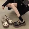 Black British style small leather shoes women's autumn and winter 2024 new platform muffin loafers velvet cotton shoes Mary Jane shoes