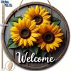 2D flat 20*20cm 1pc Rustic Yellow sunflower print Welcome Wall Awesome Hanging Decor, Spring and summer style high quality Round Wood Art Plaques Sign