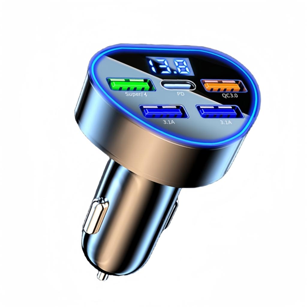 200W PD Heart-shaped Car Charger QC3.0 Fast Charge 1 To 5 Car Socket Plug 5 Port Flash Charge with Digital Display