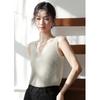 גופיית V צווארון פס סריג חולצות קרופ חולצות נשים קיץ Camis כרית חזה קמיצה אופנה מזדמן צינור נשי קצוץ אפוד ללא שרוולים