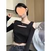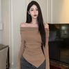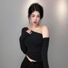 חולצת טי סקסית בסגנון קוריאני, חושפת כתפיים, גזרה צמודה, שרוולים ארוכים, לסתיו/חורף