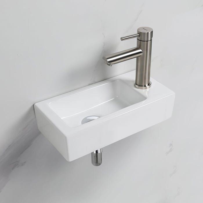Lavabo - ibergrif - m41102-r - céramique - blanc - rectangulaire - montage mural