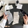 Gray-Blue Striped Embroidered Bow Socks for Women – Korean Ballet Style, Trendy All-Match Socks