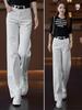 2025 ג'ינס לבן בגזרה גבוהה לנשים, בגזרה צמודה, עם רגליים רחבות - מכנסי קיץ דקים ורב-תכליתיים