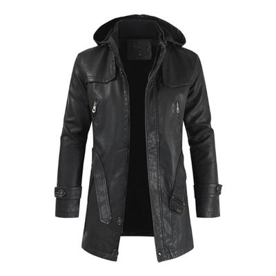 מעל הברך מעיל עור גברים חורף פלוס קטיפה עבה מעיל עור חם מעיל אופנוע מעיל פנאי פרקים ארוך
