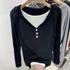 Half-open Collar Contrasting Long-sleeved T-shirt Women's Spring Slim Fake Two-piece Top
