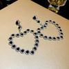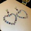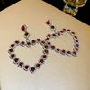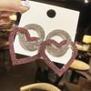 Silver Needle Exaggerated Heart Earrings with Hollow Diamond Design - Luxury European & American Style for Women