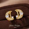 עגילי ירח חדשים בעיצוב נישה משובצים ביהלומים מלאים עגילי זהב יוקרתיים קלים