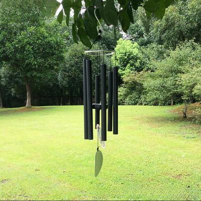 פעמון רוח שחור עם 6 צינורות מתכת וו בצורת S טבעי מרגיע מלודי פטיו גן חיצוני