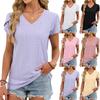 חולצת טריקו חדשה ואופנתית עם צווארון V וכפתורים, חלולה רופפת ושרוולים קצרים לנשים