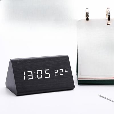 שעוני מעורר חשמליים מעץ שעון דיגיטלי בצורת משולש מודרני מתאים לחדר שינה ליד המיטה