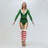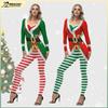 Women Sexy Striped Print Jumpsuit Christmas Adult Bodysuit Holiday Party Zentai Suit Christmas Gift Long Sleeve Slim Catsuit New
