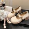 נעלי עור קטנות מרי ג'יין לנשים ראש עגול 2025 אביב חדש נעלי עקב בינוני סלבריטי אינטרנט רב-תכליתיות עקב עבה פה רדוד נעלי פלטפורמה