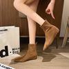 Round head inner height increase short boots autumn and winter retro slope heel thin wide boots flat bottom matte short western boots