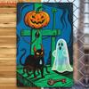 2D Flat Wooden Sign 30*20cm Square Wooden Sign, Halloween Ghosts and Pumpkin Decorative Sign, Vintage Wall Art, Multipurpose Home Decor, Festive Party