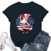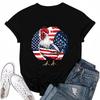 חולצת טי שירט קז'ואל לנשים עם צווארון עגול ושרוולים קצרים מודפסת ליום העצמאות