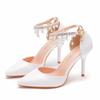 French Gentle Pearl Shiny Microfiber One Word Strap Hollow Thin with Two Wear Wedding Shoes High Heels Women's Shoes