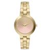 Case diameter 34mm, band width 18mm, mineral crystal, quartz movement, three-hand analog display, imported product. Alloy round case, rose gold dial. Rose gold stainless steel bracelet.