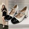 2025 new pearl retro Mary Jane shoes women's spring high-heeled French square head color matching small fragrant thick-heeled single shoes