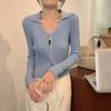 דרום קוריאה חולצות אופנה שיק נשים קיץ חדש רב תכליתי דש כפול פתוח רוכסן בכושר הרזיה שרוולים קצרים סרוגים למעלה נשים