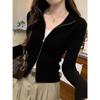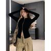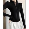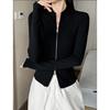 Solid Zipper Front Slim Top, Versatile Long Sleeve Mock Neck Top for Spring & Fall, Women's Clothing