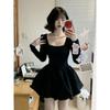 שמלת נשים לאביב-קיץ בסגנון Hepburn עם צווארון מרובע, מראה אלגנטי, גזרה צמודה, אורך בינוני