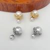 Front And Rear Wearing Crown Bead Stud Earrings, High-End Luxury Earrings, French Personalized Design, Silver Needle Earrings Wholesale