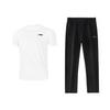 Li Ning צבע אחיד נוח רך צווארון עגול שרוול קצר טופ ומכנסיים ארוכים מנדפי זיעה מותן בינוני חליפת ספורט קז'ואלית יוניסקס ATSU817-2+AYKU835-1
