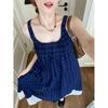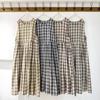2025 summer new cotton double-layer yarn round neck plaid long dress design sense niche sleeveless dress women
