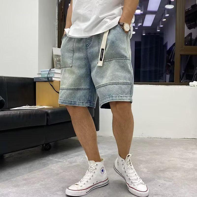 Men's Summer Hip-hop Loose-fit Denim Shorts, Japanese-style Casual Workwear Five-inch Shorts