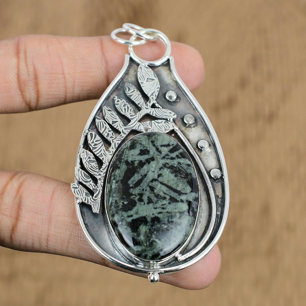 Natural Green Rice Jasper Gemstone Pendant 925 Sterling Silver Jewelry For Girls