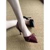 New burgundy bow gentle high heels women's patent leather temperament shallow mouth stiletto single shoes