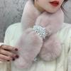 צעיף חורף חדש לנשים פרווה מלאכותית קטיפה פנינים צעיף פרווה מלאכותית עבה מחמם צלב תלת מימדי צעיפים חדשים אביזרי לבוש