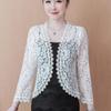 Ladies Short Sleeve Tailored Collar Lace Hollow Out Solid Color Cardigan Jacket Suit Coat