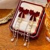 Spring and summer flocking bow pearl fringed earrings retro stud earrings a two wear earrings women
