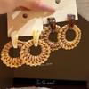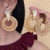 Silver needle resin rattan round pendant earrings niche exaggerated temperament earrings simple fashion versatile earrings