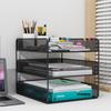 מציגים את מארגן הקבצים החזק שלנו, העשוי מרשת מתכת עבה ומעוגלת לעמידות ויציבות משופרות. הציפוי השחור המקצועי מבטיח מראה מלוטש תוך מתן שימוש לאורך זמן.. עיצוב המדף הייחודי שלו, בעל 3 שכבות, מציע אפשרויות אחסון מגוונות - המגש האופקי אידיאלי למסמכים ולציוד משרדי, בעוד ששני החלקים האנכיים מאחסנים ניירות בצורה אנכית..