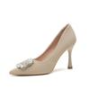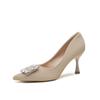 French high heels women's spring and summer new temperament soft leather non-grinding feet pointed thin heel rhinestone square buckle shoes