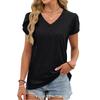 חולצת טריקו לנשים קיץ בצבע אחיד עם צווארון V שרוול אריחים רפויים חולצות טי שירט קצרות
