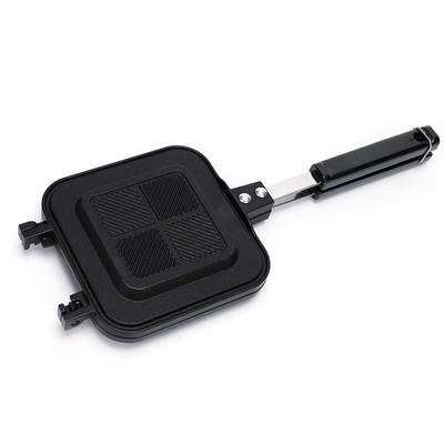 מחבת טיגון דו צדדית מאלומיניום להכנת סנדוויץ' דו צדדית מחבת עם ידיות מחבת טוסט מחבת פסים נון-stick
