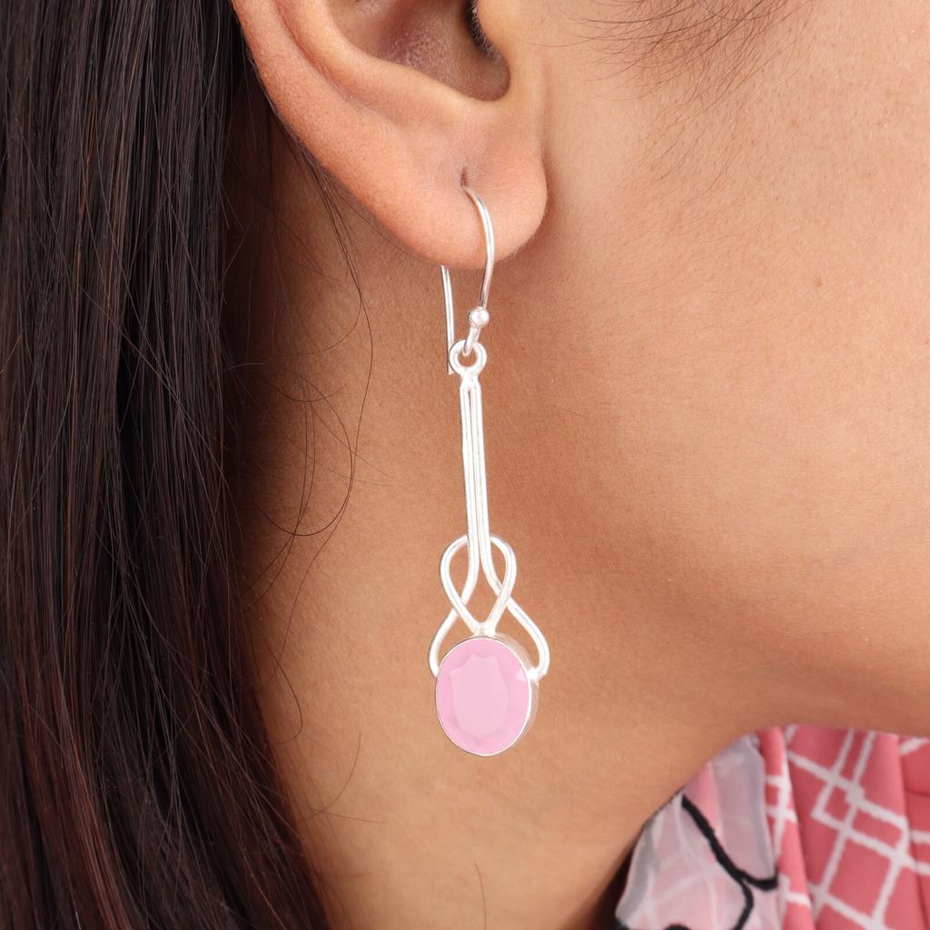 Rose Chalcedony Gemstone 925 Sterling Silver Jewelry Handmade Earrings 1.76" EE-171-18