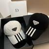 Hat Men and Women Outdoor Baseball Cap Spring Solid Color Extended Brim Baseball Cap Striped Hat Black Cotton