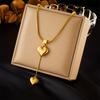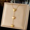 European & American 14K Gold Titanium Y-Shaped Necklace with Double Heart Pendants - Women's Fashion Style.
