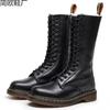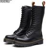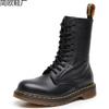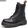 Medium and thick bottom lychee pattern locomotive boots women's hole British first layer heightening short boots men's and women's leather boots round