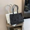 עיצוב בד מסוגנן: סגנון הבד של תיק זה מציע משיכה אסתטית ייחודית, המשלבת פשטות עם פרטים מורכבים כגון גדילים תלויים ופרחים בצבע תואם לרצועת הכתף למראה שיקי ואופנתי.