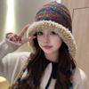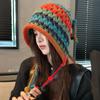 Autumn and winter wool hat women's contrasting color splicing shows the face, small knitted hat strap, warm ear protection, headgear, tide niche