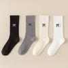 Autumn Socks, Women's Embroidered Bow Mid-calf Lolita Retro Trendy Solid Color Versatile Cotton Socks