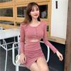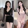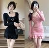 High Waist Line Pleated Temperament Slim Long Sleeve Dress
